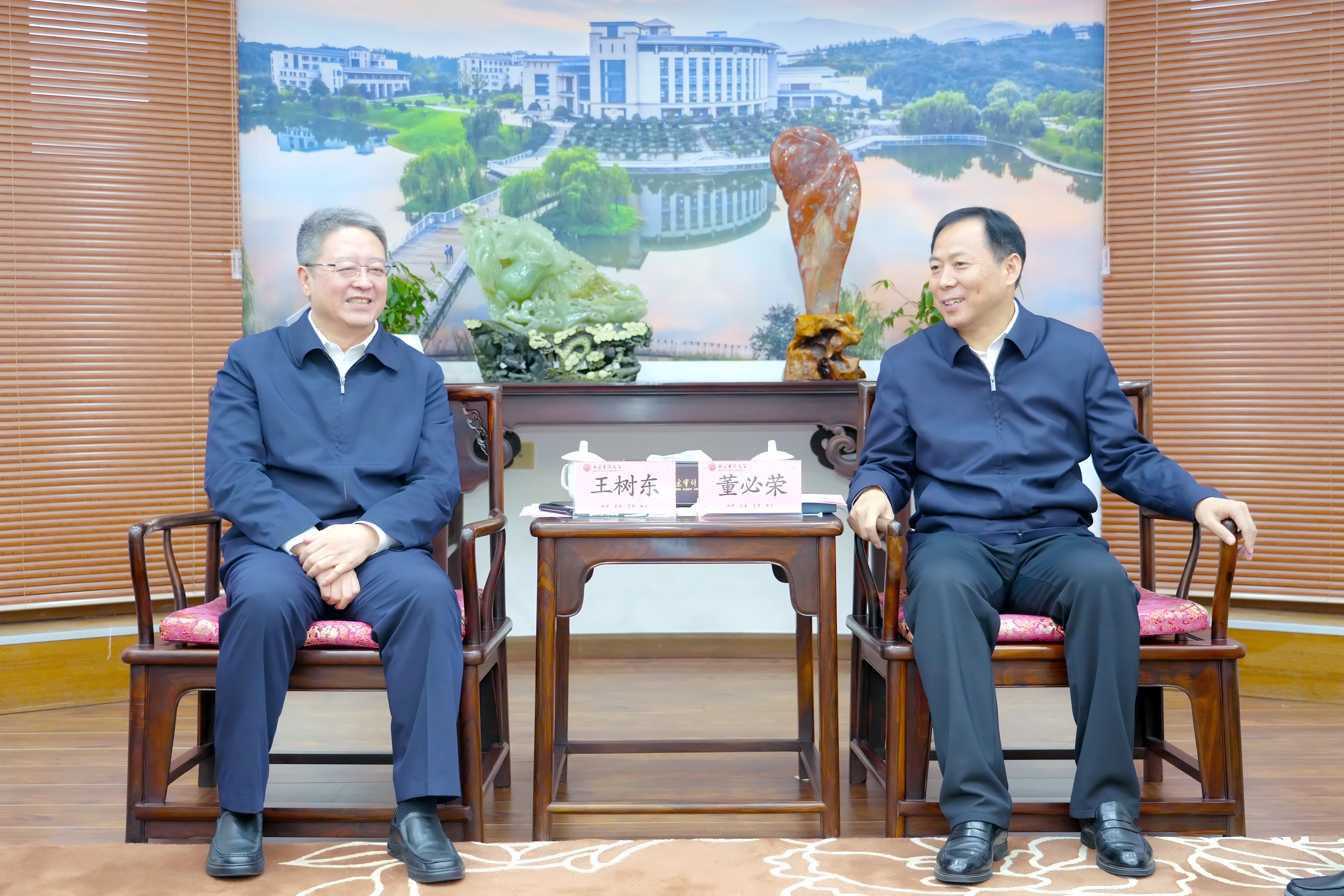董必荣对王树东一行表示欢迎,对中国中煤长期支持学校审计人才培养表示感谢,介绍了南京审计大学基本情况以及在人才培养、学科建设、国际交流等方面的特色成果。他表示,中国中煤是保障国家能源安全、维护国有资产安全、推动经济绿色转型的关键力量。本次合作既是高校智力资源与审计实务需求的精准对接,也是理论与实践的深度融合。期待双方进一步发挥资源优势,创新合作机制,推进国有企业内部治理体系现代化建设,实现互利共赢发展。
