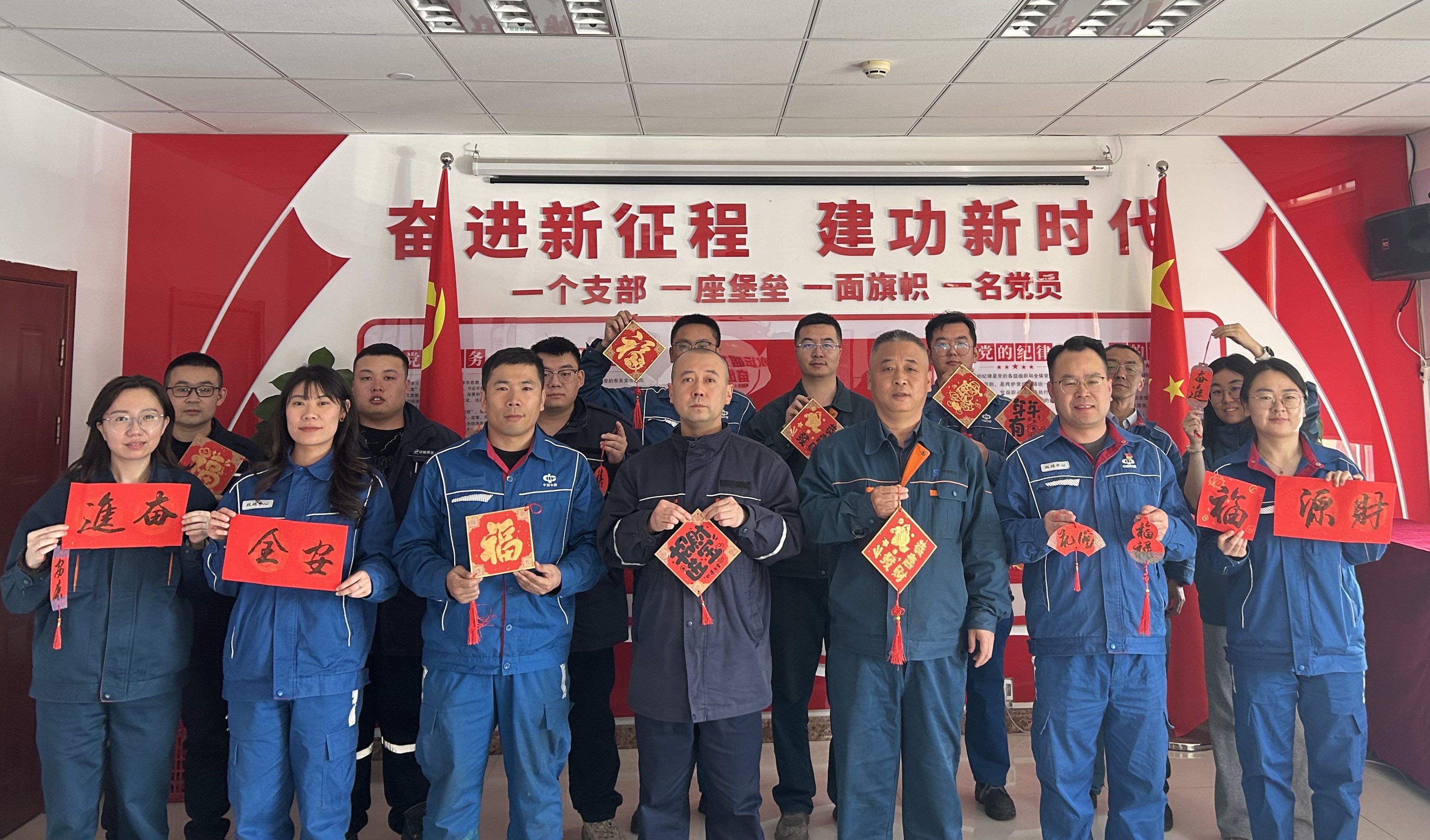 活动中首先传达学习了上级集团2026年党风廉政建设和反腐败工作会议精神,通报年度工作成效,并就春节期间廉洁自律、安全生产、作风纪律等方面提出明确要求,引导党员干部守底线、树新风。在交流分享环节,党员代表结合自身岗位实际,畅谈过去一年的工作收获、成长感悟与新年计划,围绕支部共建、业务提升、服务保障、队伍建设等方面积极建言献策,在思想碰撞中凝聚发展共识、激发奋进动力。活动现场年味浓厚、氛围热烈。党员们共同参与写福字拓印传统工艺体验,在动手实践中感受传统文化魅力,一笔一画、一拓一印间,将新春祝福与初心使命融入其中,既增添了节日气息,也增强了文化自信。趣味互动环节,新春知识问答、党建词汇猜谜等小游戏轮番开展,党员们踊跃参与、积极应答,在轻松活泼的氛围中巩固理论知识、增进支部情谊。